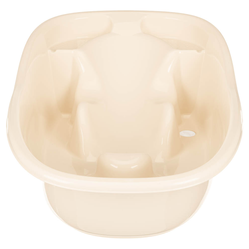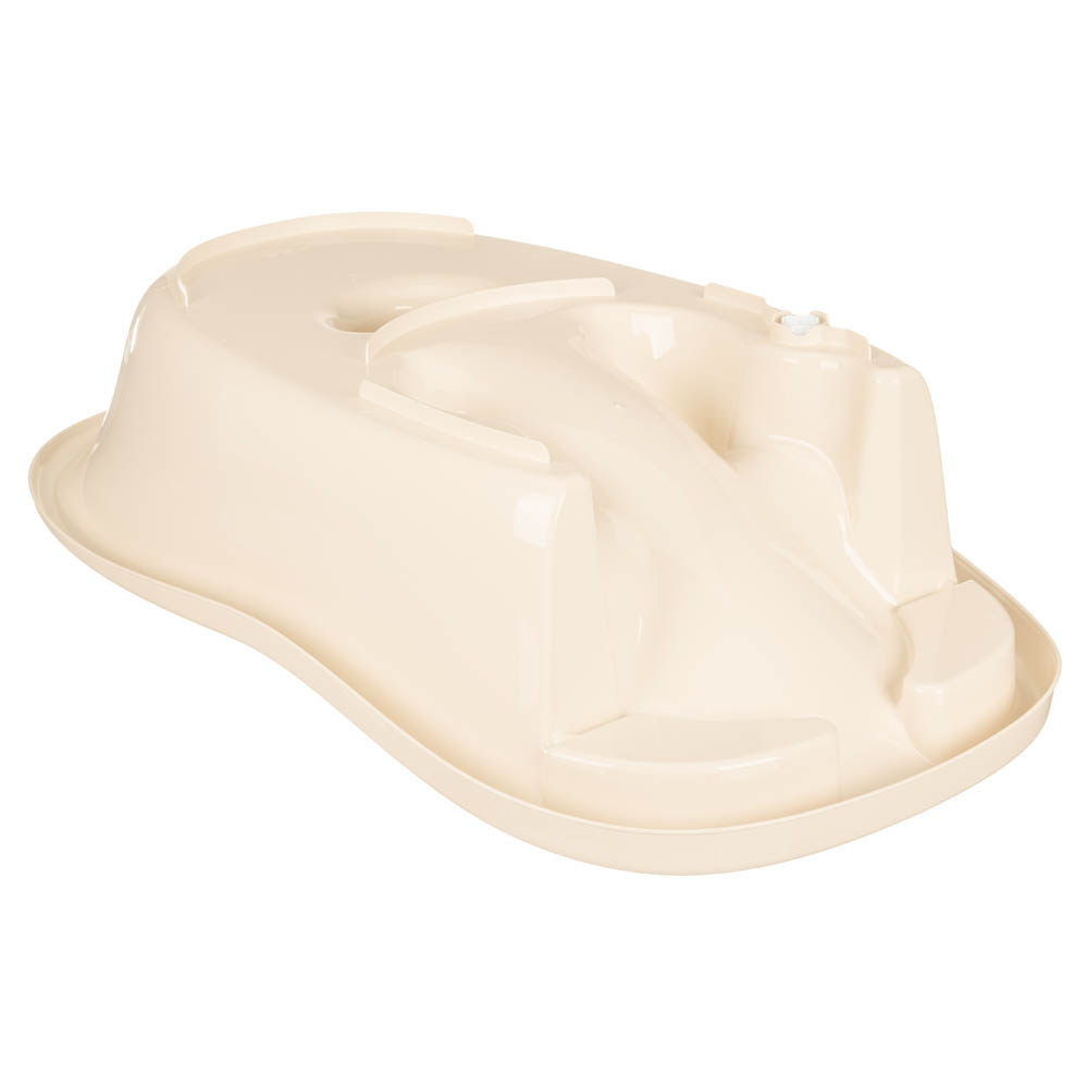 Благодаря сложной форме в ванне удобно купать малыша в положении лежа на анатомической горке (до 6 месяцев) и сидя (от 6 месяцев). Встроенная анатомическая горка соответствует форме тела ребенка. Младенцу комфортно и безопасно во время водных процедур, его не нужно постоянно поддерживать, помощь второго человека не требуется. Специальные ограничители в подмышечной и паховой зоне не дадут малышу соскользнуть. Нескользящая поверхность горки не навредит нежной коже малыша. Уверенно сидящих детей размещают напротив горки. Безопасное положение обеспечит спинка ванны и ограничитель в паховой зоне. Ванночка имеет эргономичную обтекаемую форму, широкие края и вместительные полочки для купальных принадлежностей с нескользящей поверхностью. Удобный слив позволит быстро осушить ванночку. Надежная пробка обеспечит герметичность.
