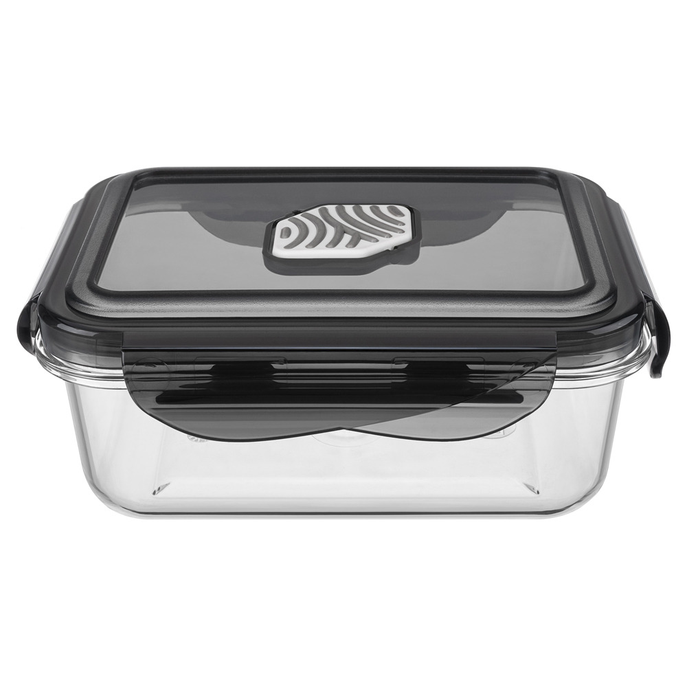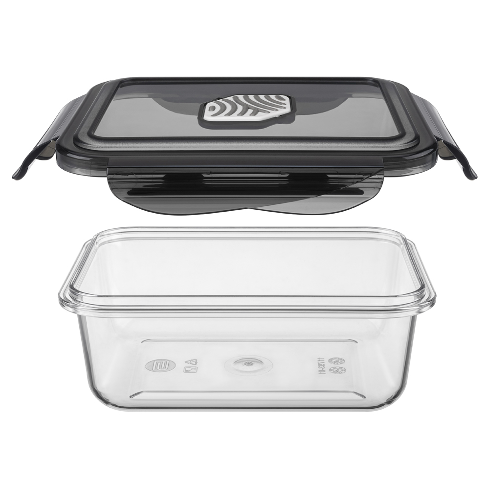 Уплотнители из пищевого силикона в крышке и клапане обеспечивают герметичность контейнера, при этом съёмный уплотнитель легко вытащить и промыть. Контейнеры удобно ставятся друг на друга и экономят пространство на кухне. Не содержат бисфенол А и фталаты.