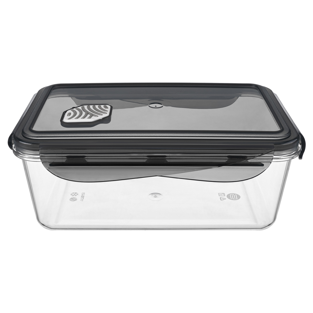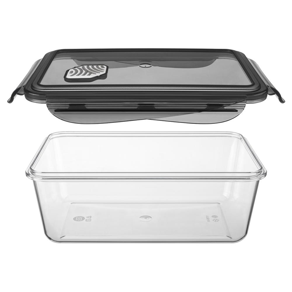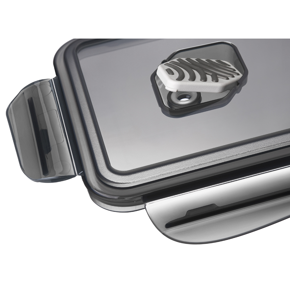 Уплотнители из пищевого силикона в крышке и клапане обеспечивают герметичность контейнера, при этом съёмный уплотнитель легко вытащить и промыть. Контейнеры удобно ставятся друг на друга и экономят пространство на кухне. Не содержат бисфенол А и фталаты.