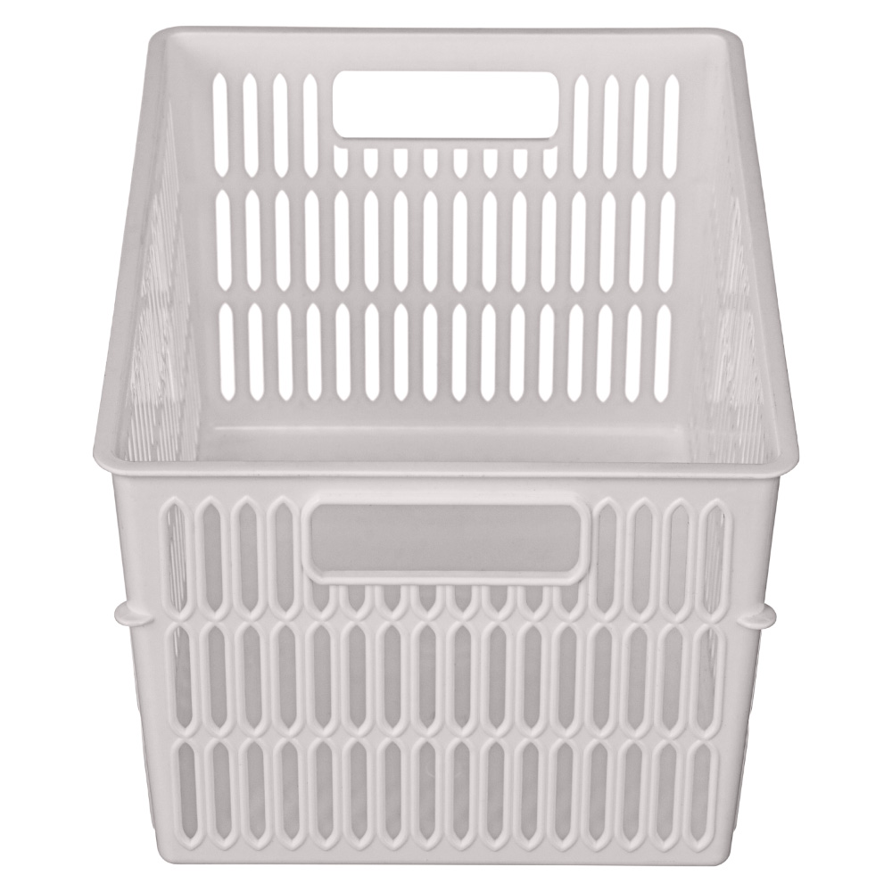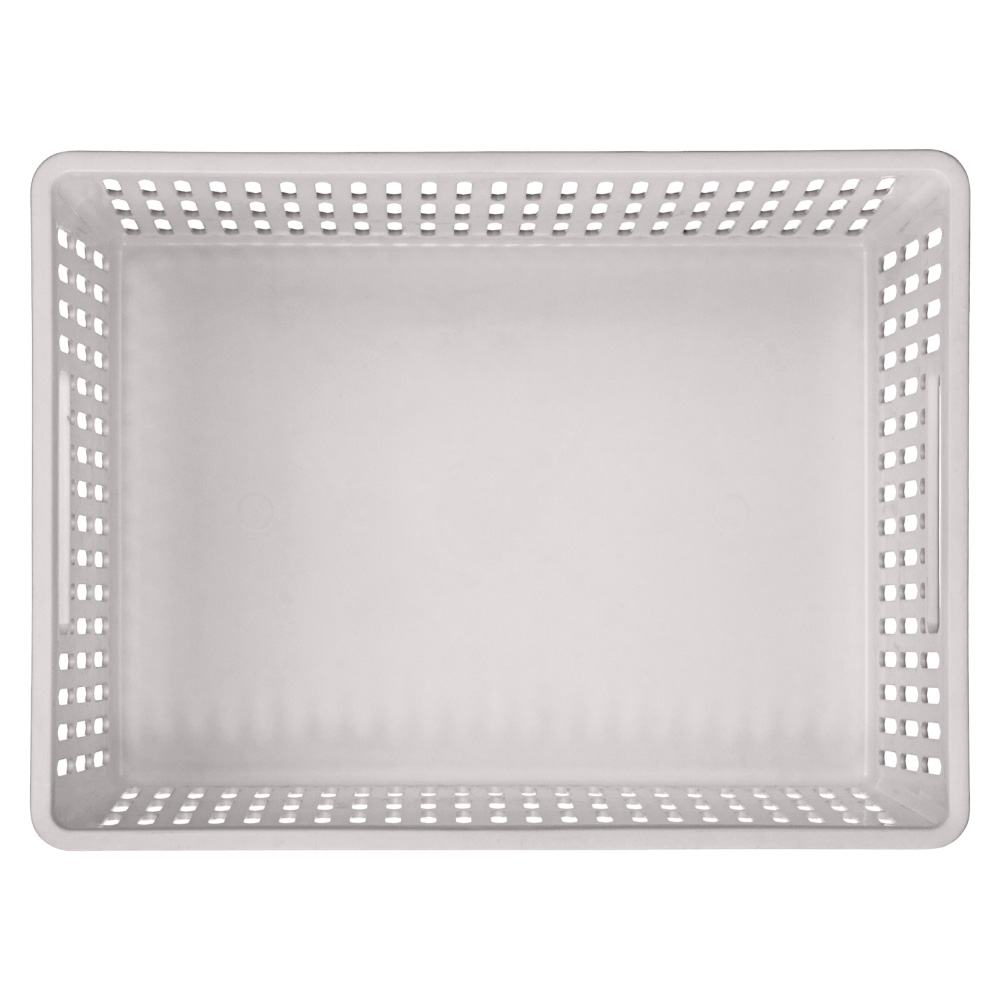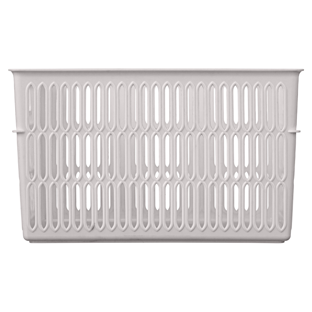Благодаря боковым ручкам корзинки удобно переносить или снимать с полки. Перфорированные стенки корзинки создают дополнительную вентиляцию содержимого.