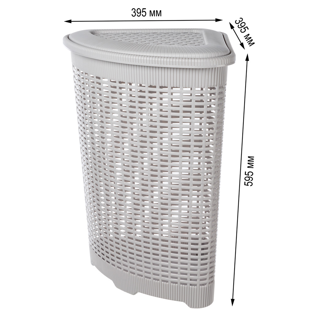 КОРЗИНА ДЛЯ БЕЛЬЯ УГЛОВАЯ, 395Х395Х595 ММ, 50Л (Светло-серый)