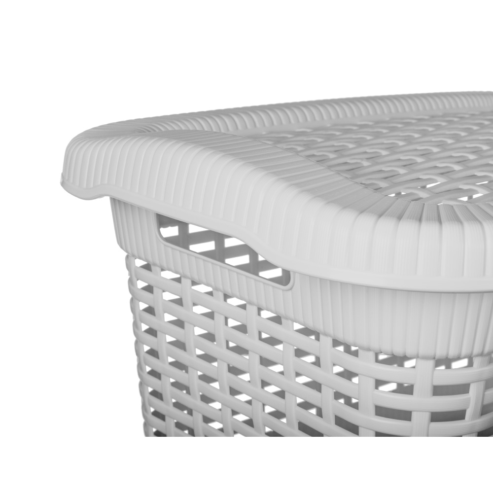 Корзина для белья, стилизованная под натуральный ротанг, гармонично впишется в ванную комнату. Для удобства переноски по бокам корзины предусмотрены специальные отверстия. Крышка скрывает содержимое корзины от посторонних глаз, а также может служить дополнительным местом для хранения легких туалетных принадлежностей. Корзина изготавливается из прочного и долговечного полипропилена, отвечающего требованиям влажного помещения. Естественные нейтральные цвета и приятная фактура делают корзину эстетически привлекательным дополнением интерьера ванной комнаты.