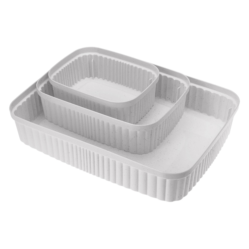 Несколько лотков без крышки одной высоты удобно ставятся один в другой или рядом.