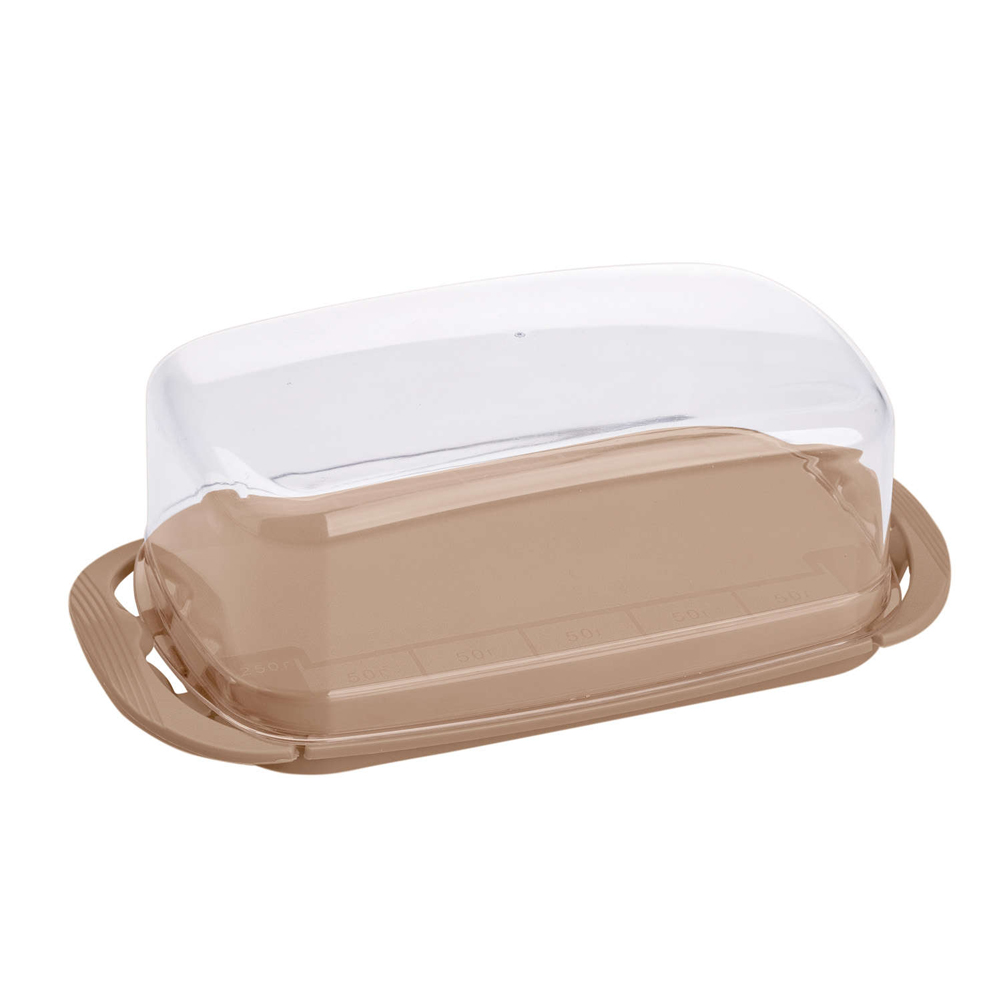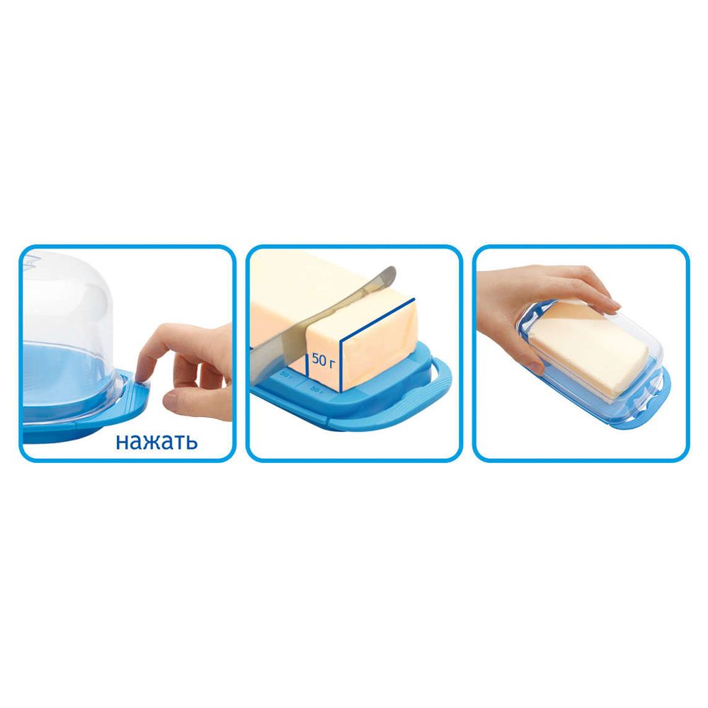 Размеры и объем масленки Phibo позволяют оптимально хранить стандартные упаковки сливочного масла весом 200г и 250г, при этом она компактна и не занимает много места. Масленка состоит из основания с двумя ручками-фиксаторами и прозрачной крышки, которая защищает содержимое от посторонних запахов. Закрытую масленку можно переносить, держа за крышку, которая надежно удерживается боковыми фиксаторами. После нажатия на фиксаторы крышка легко снимается. Благодаря мерной шкале с делениями по 50г, нанесенной на основание масленки, удобно отмерять кусочки масла, а отсутствие бортиков на основании позволяет легко отрезать их ножом. На рифленой поверхности основания не остаются царапины от ножа.