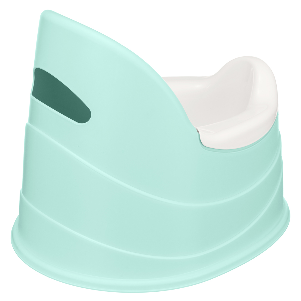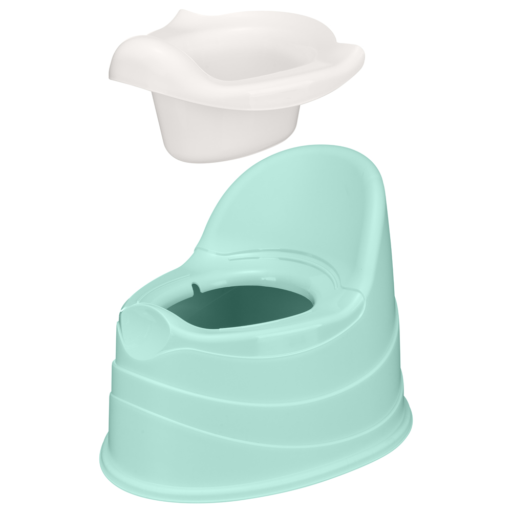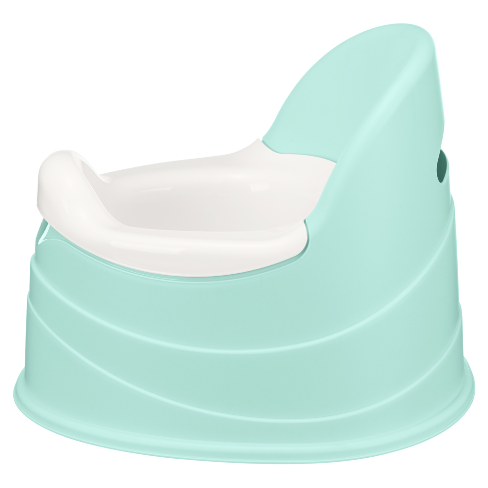 Прочные стенки и массивный корпус обеспечивают устойчивость горшка. Четыре резиновые вставки предотвращают скольжение на гладкой поверхности пола. Округлые края горшка и съемной части не царапают детскую кожу.