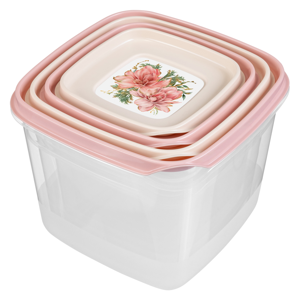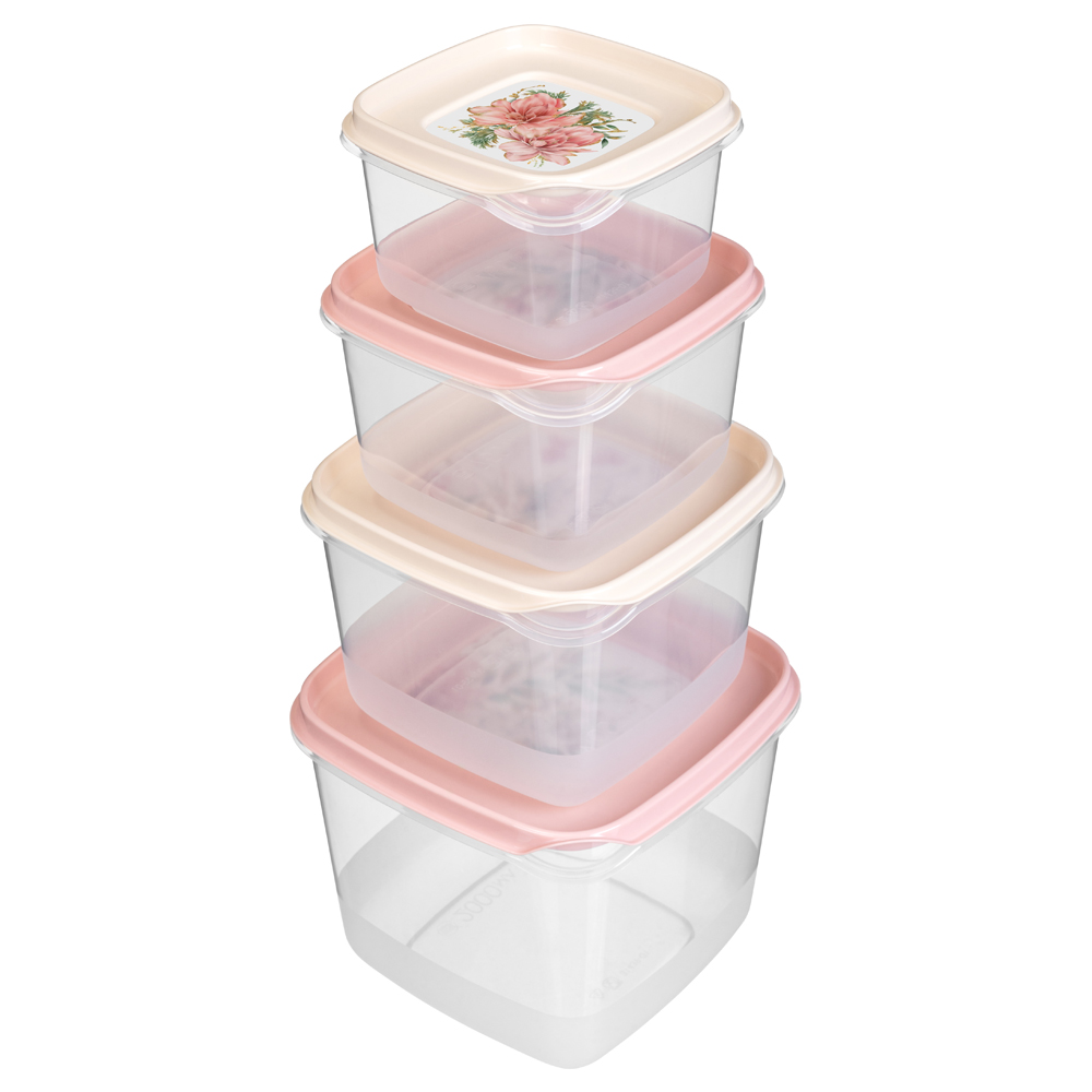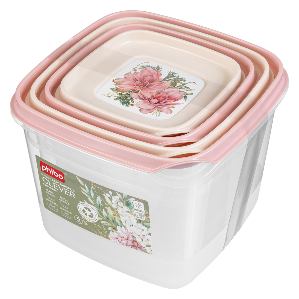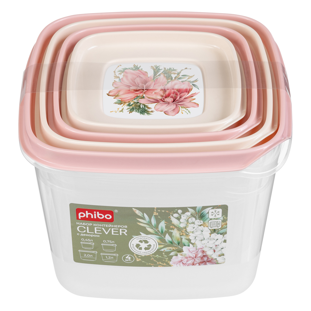 КОМПЛЕКТ КОНТЕЙНЕРОВ С ДЕКОРОМ CLEVER 4ШТ, 0,45Л + 0,75Л +1,2Л +2,0Л (Микс 1)