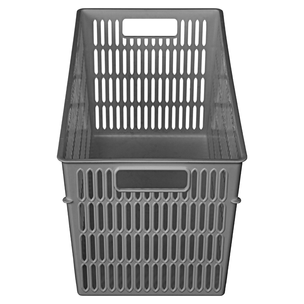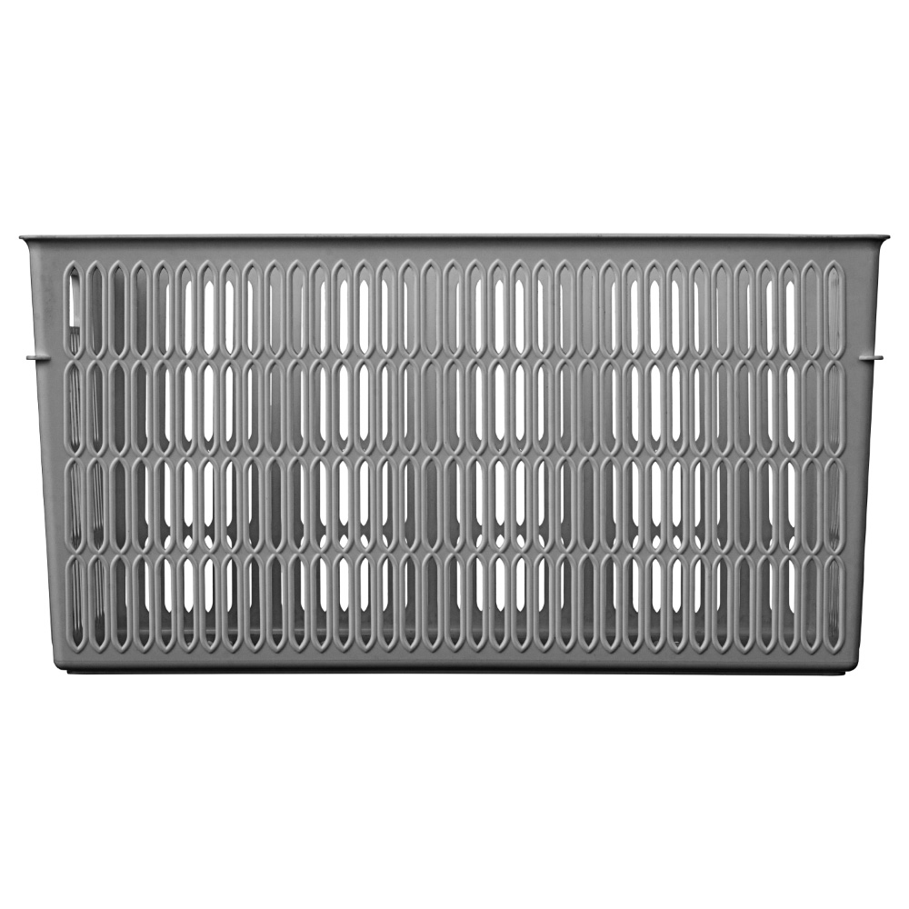 Благодаря боковым ручкам корзинки удобно переносить или снимать с полки. Перфорированные стенки корзинки создают дополнительную вентиляцию содержимого.