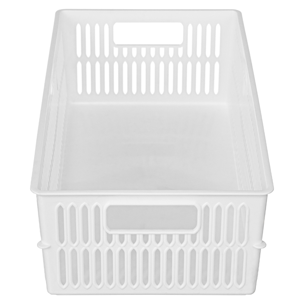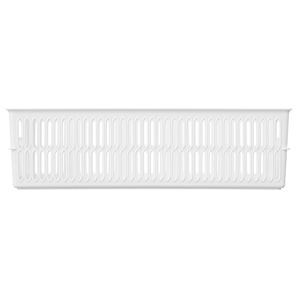 Благодаря боковым ручкам корзинки удобно переносить или снимать с полки. Перфорированные стенки корзинки создают дополнительную вентиляцию содержимого.