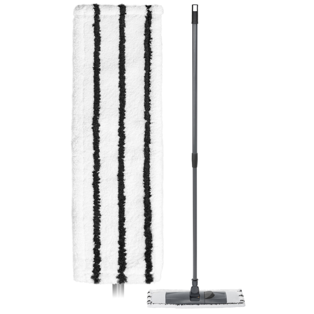Швабра плоская (флаундер) Econova со съёмной насадкой из микрофибры может использоваться как для влажной, так и для сухой уборки. Легко и эффективно собирает и удерживает грязь. Подходит для полов из любых материалов (линолеум, ламинат, паркет, керамика, гранит и др.). Легко скользит по поверхности, не оставляет разводов и ворсинок. Легко выполаскивается и быстро сохнет. Рекомендуется ручная стирка и сушка при комнатной температуре. Имеет удобную телескопическую ручку из нержавеющей стали, с помощью которой можно регулировать швабру по высоте от 75 по 130 см. Размер основания швабры 40х10 см.