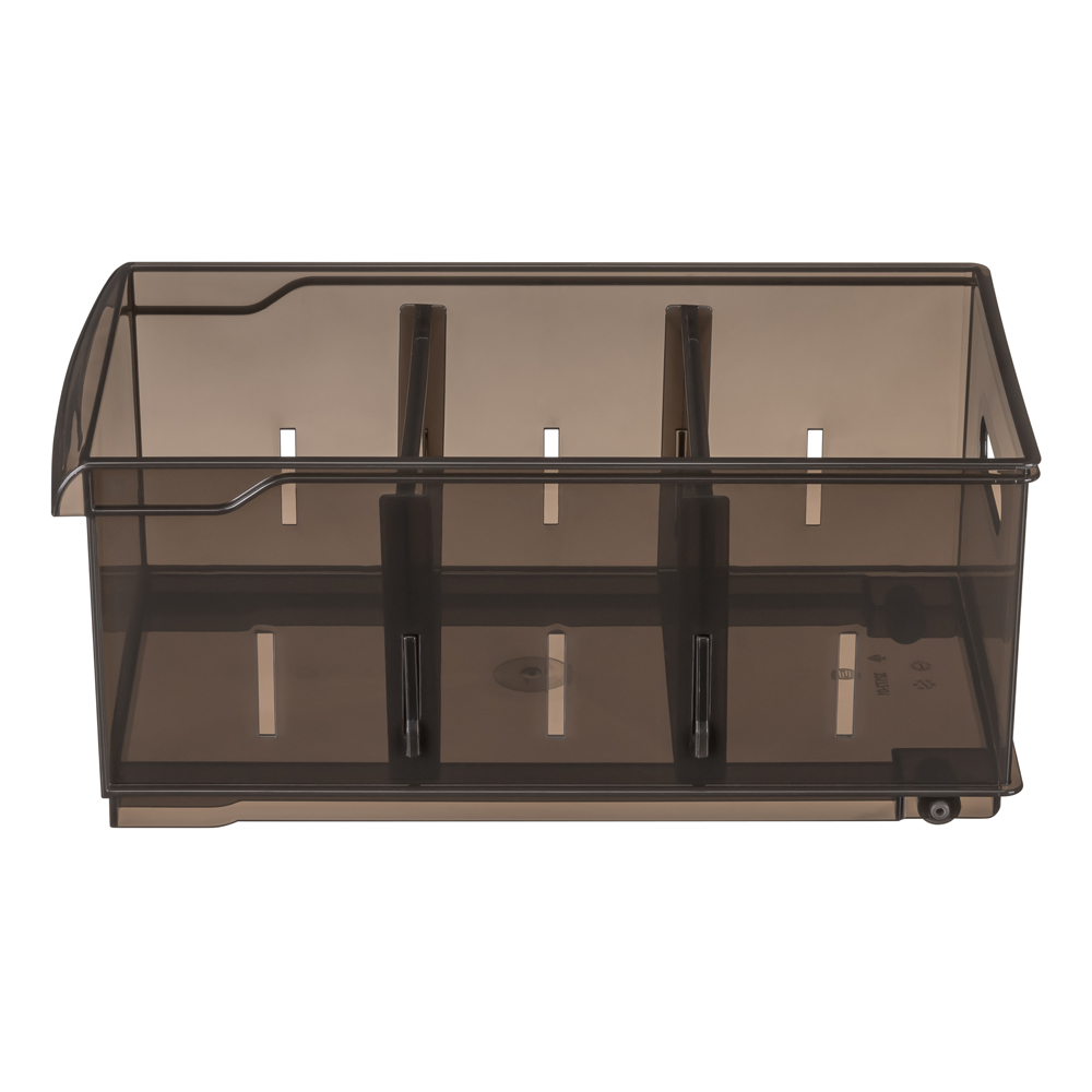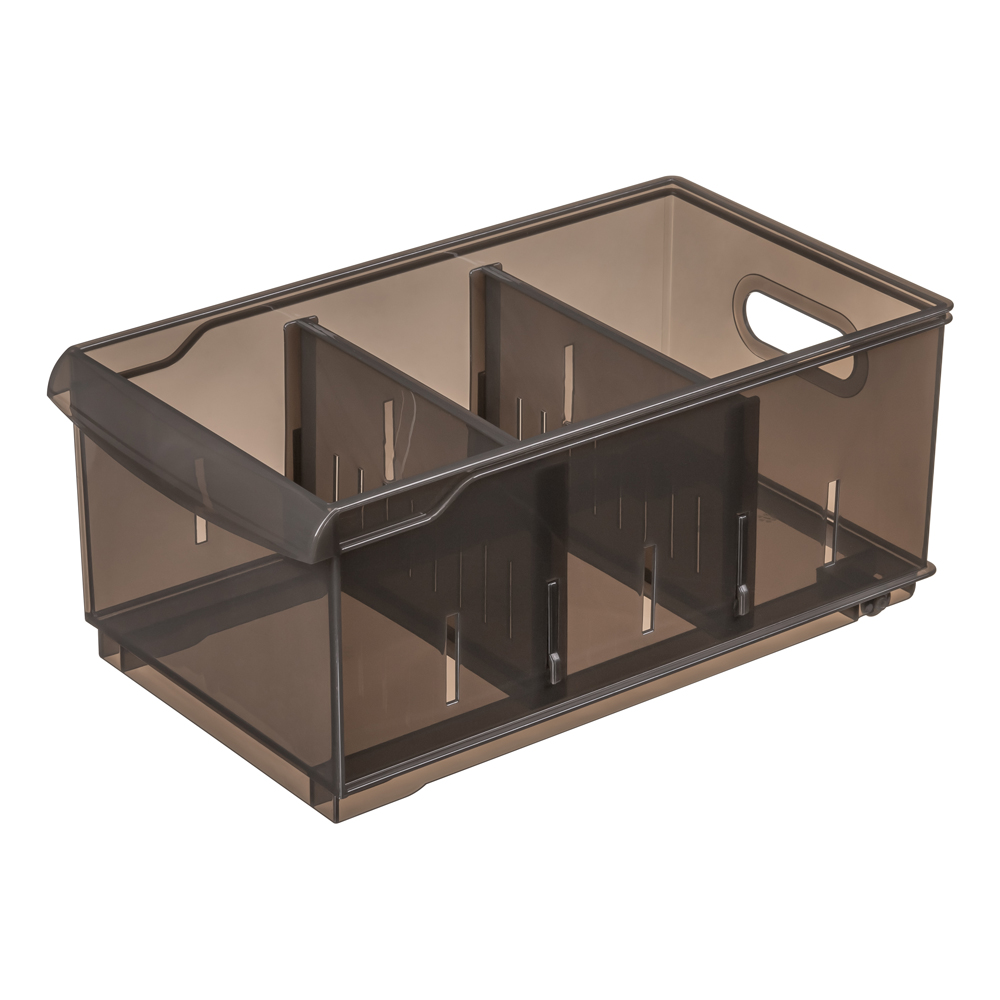 Контейнер универсальный OPTIMA от Econova с роликами подойдёт для хранения различных предметов (химии, кухонных предметов, одежды, игрушек и пр.). С помощью нескольких перегородок, которые идут в комплекте, и специальных пазов можно менять размер отделений контейнера по необходимости, приспособив как для мелочей, так и для крупных предметов. Надёжные ролики и ручка в верхней части ящика позволяют легко выдвигать его. Прозрачные стенки позволяют видеть, что хранится внутри каждого из контейнеров.