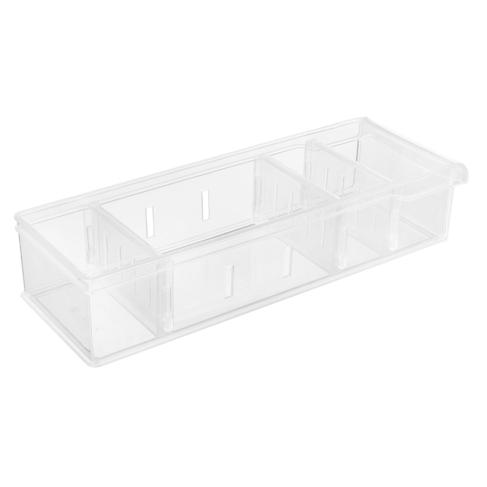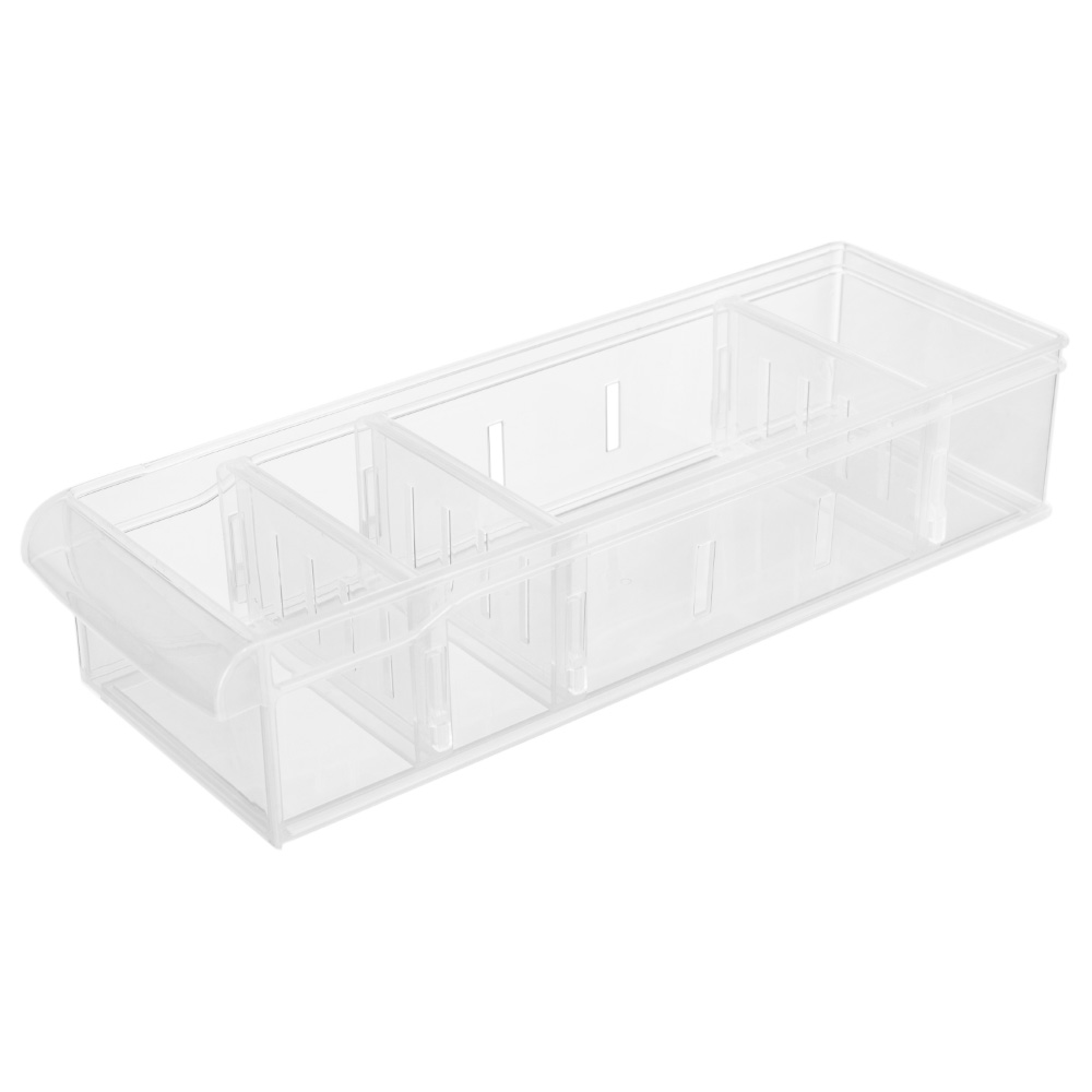С помощью нескольких перегородок, которые идут в комплекте, и специальных пазов можно менять размер отделений контейнера по необходимости, приспособив как для мелочей, так и для крупных предметов.