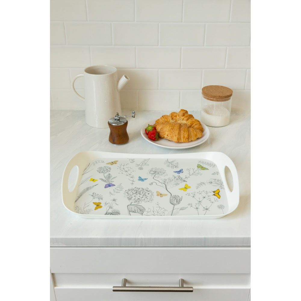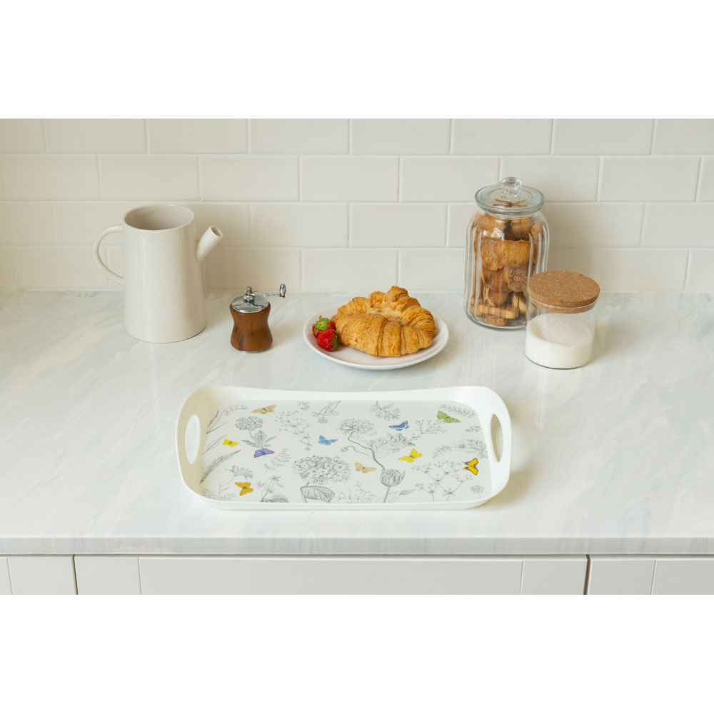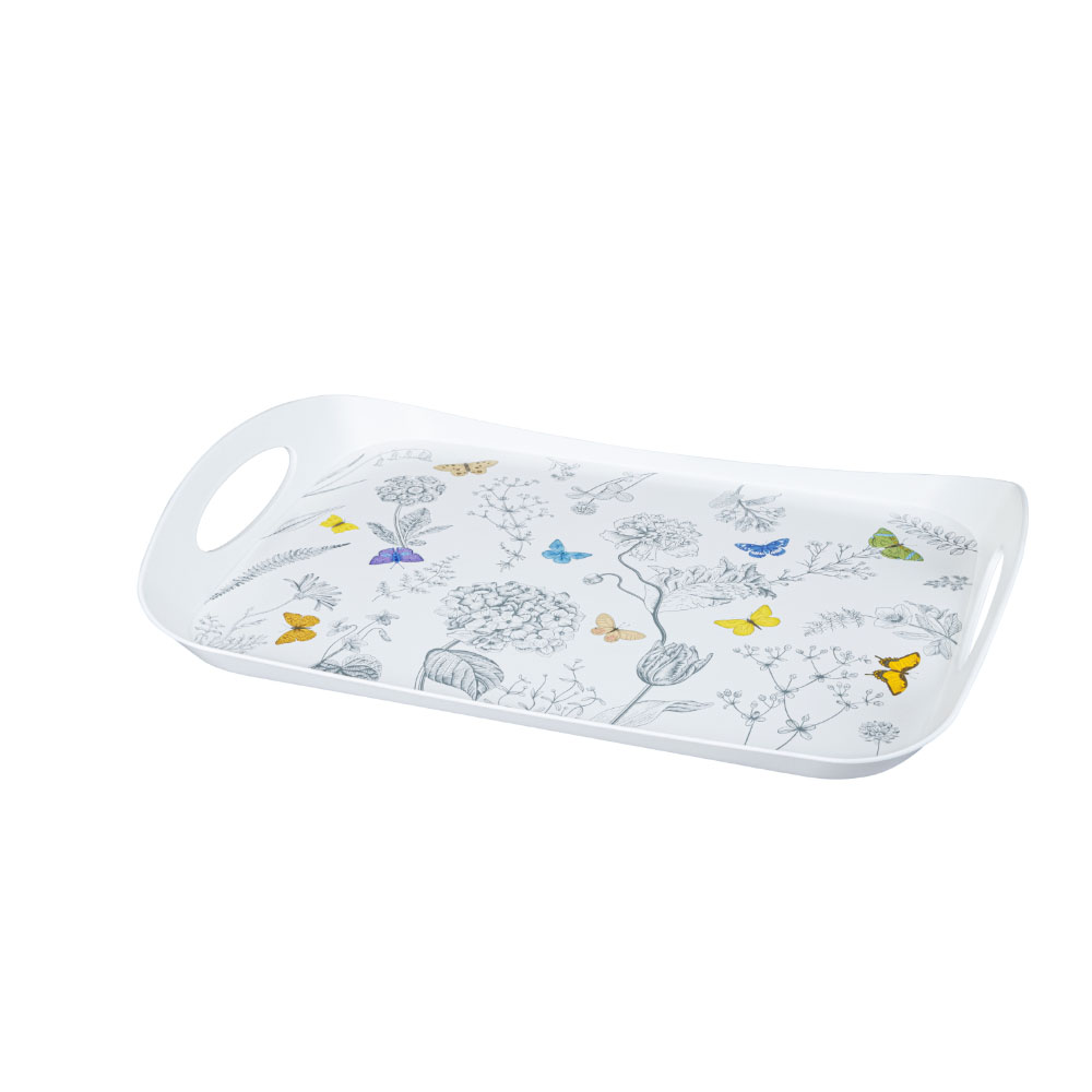 Легкий и удобный в эксплуатации поднос декорирован с помощью современной технологии, благодаря которой декор надежно держится на изделии. Удобные, эргономичные ручки позволяют без труда переносить поднос, а современный декор делает его отличным дополнением интерьера. Изготовлен из прочного пластика: выдерживает большие нагрузки.