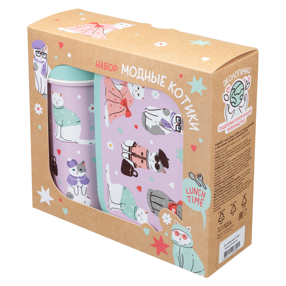 Яркий декор «Модные котики» нанесен с помощью технологии вплавления этикетки, изображение не сотрется и не смоется с течением времени.