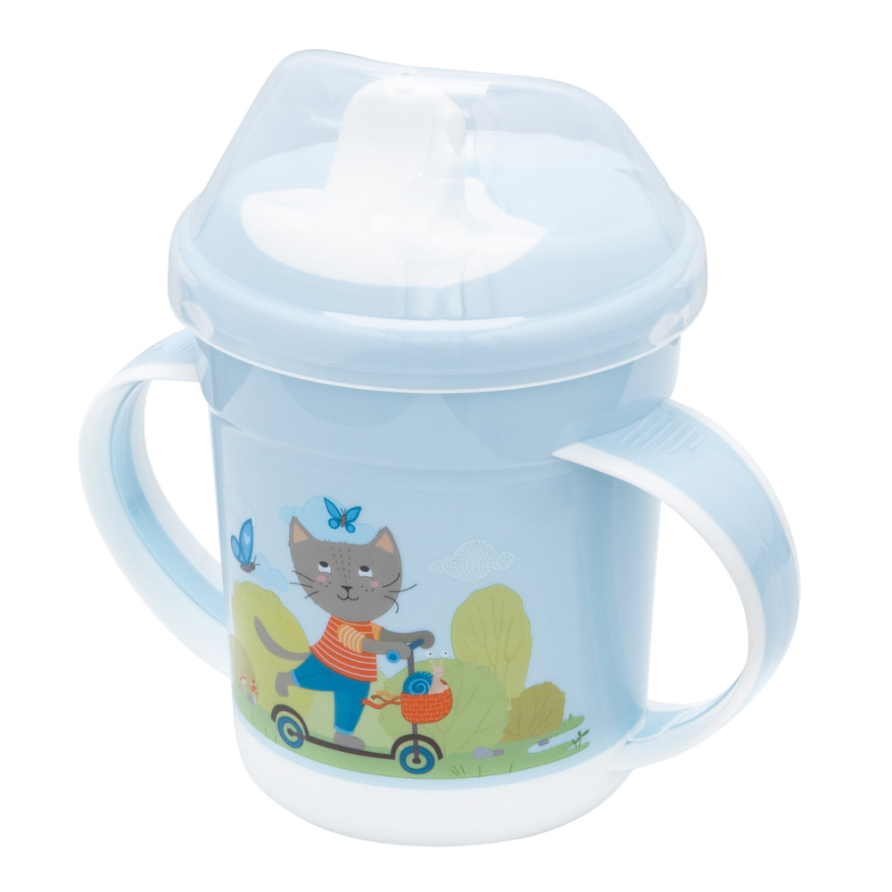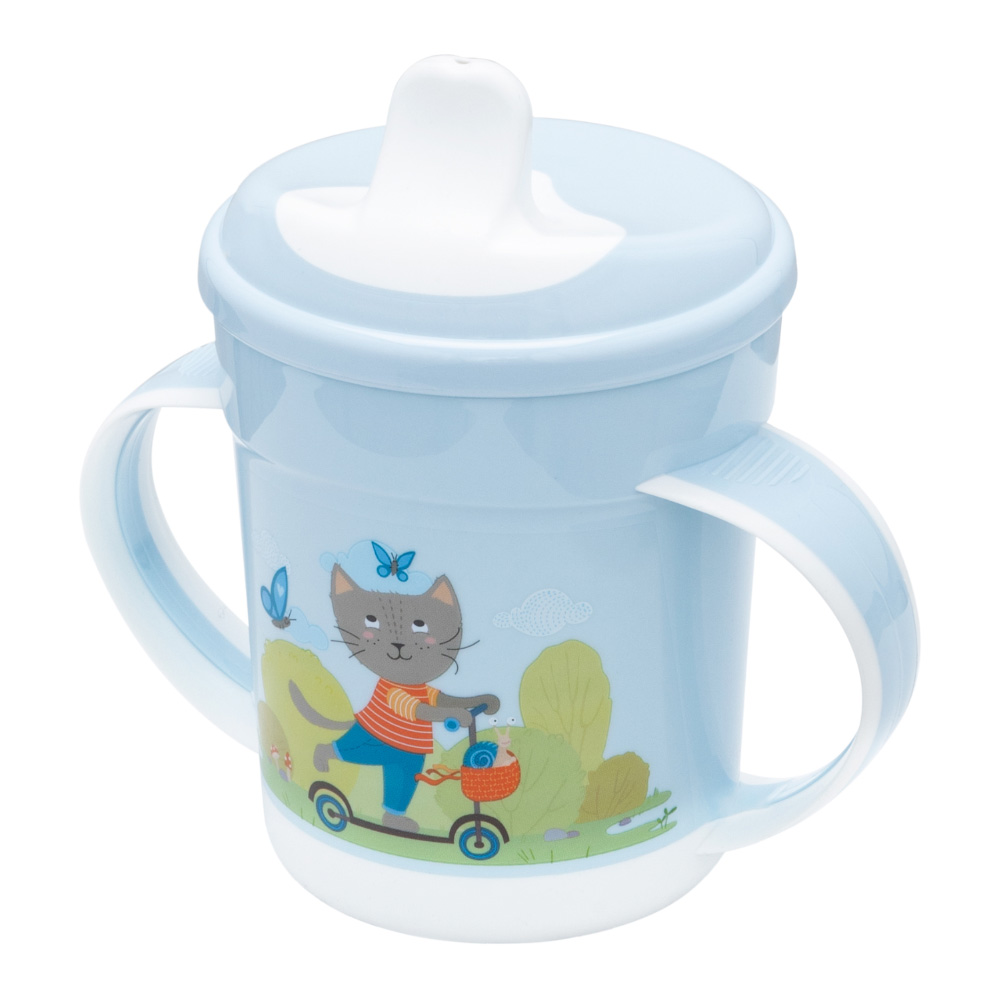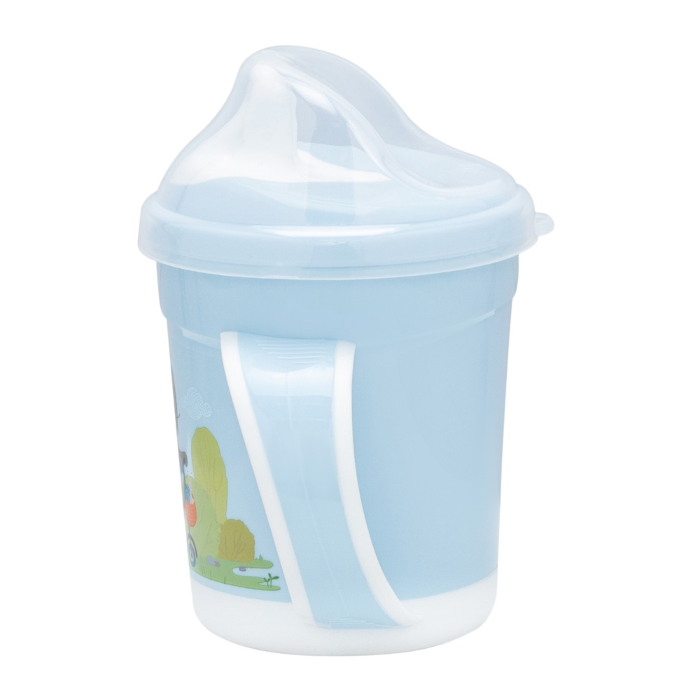 ПОИЛЬНИК С РУЧКАМИ, ДЕКОРОМ И ЗАЩИТНОЙ КРЫШКОЙ, 320МЛ (Светло-голубой)