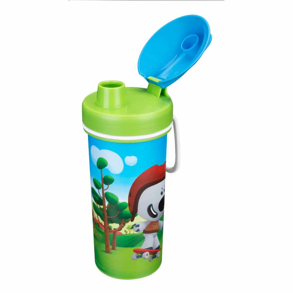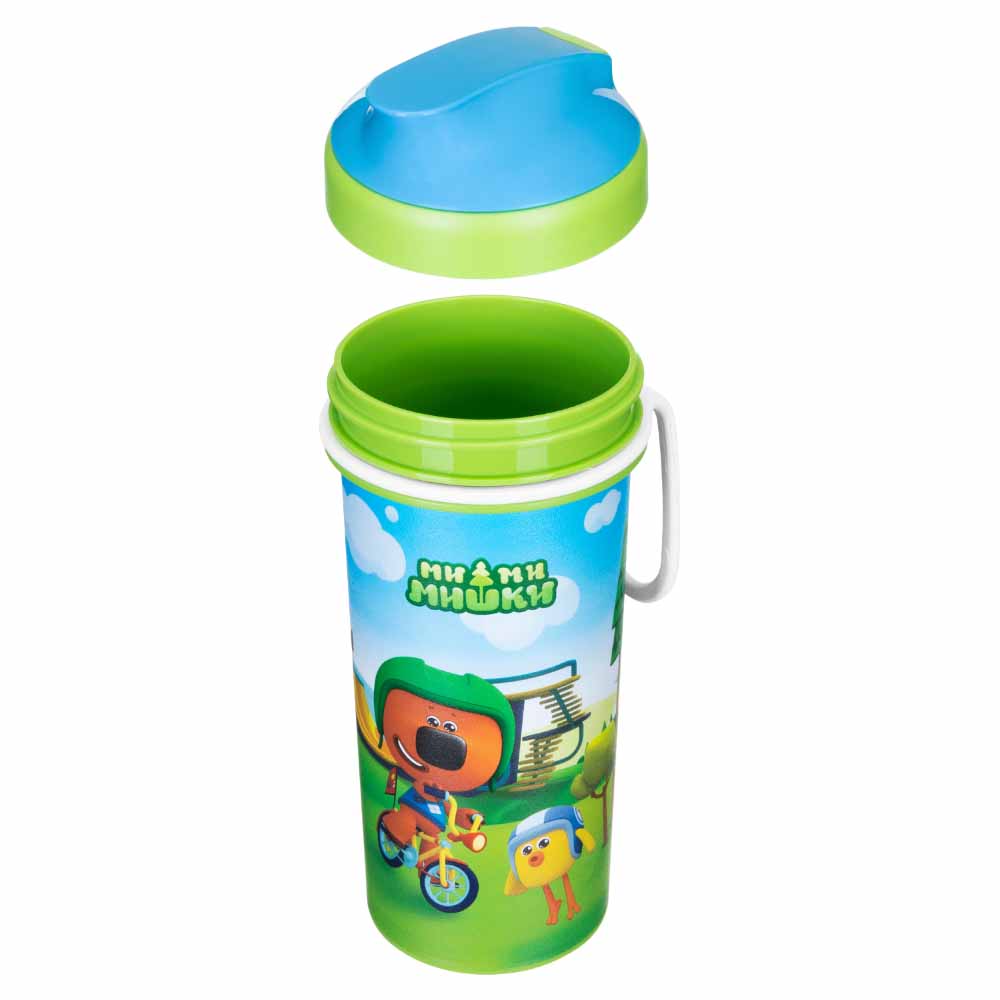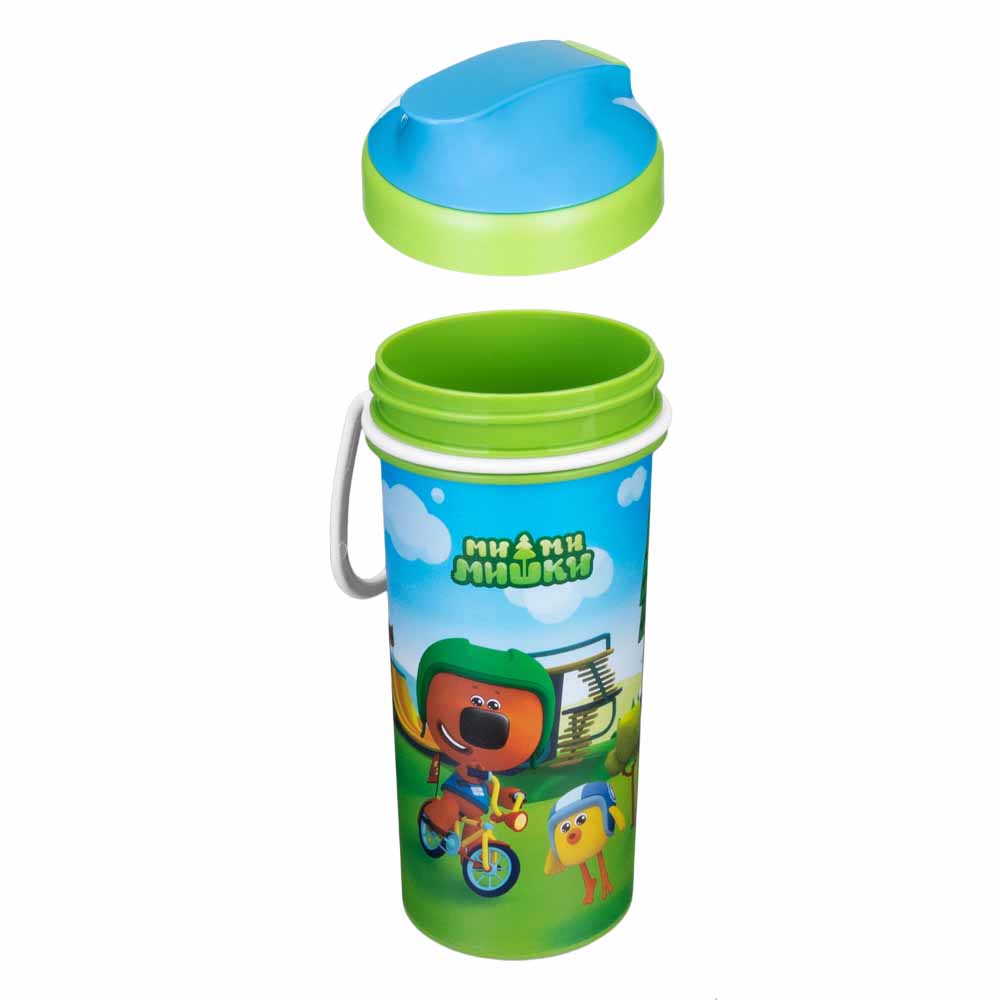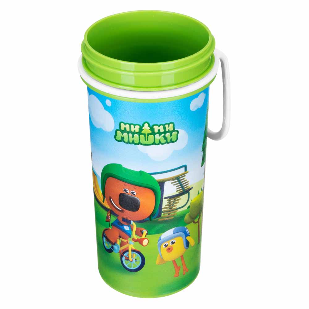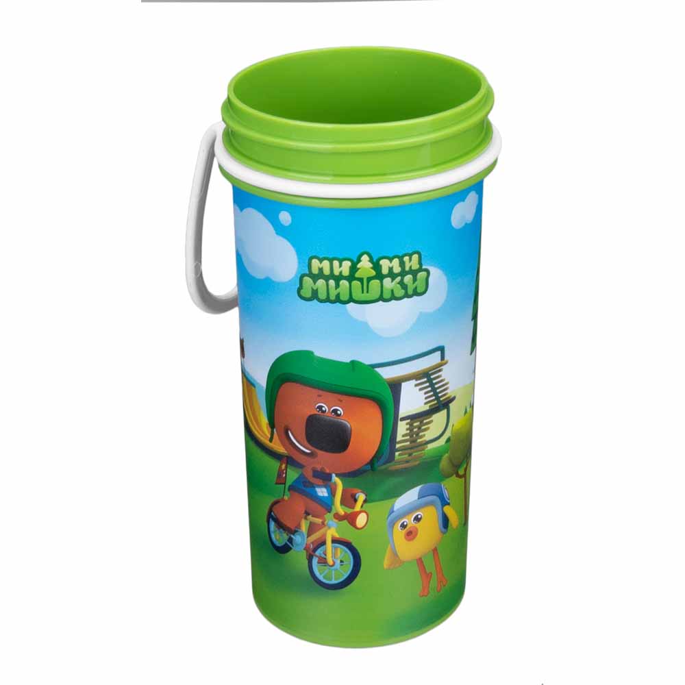 СТАКАН ДЕТСКИЙ С КРЫШКОЙ, ПЕТЛЕЙ И ДЕКОРОМ "МИ-МИ-МИШКИ" 400МЛ (Зеленый)