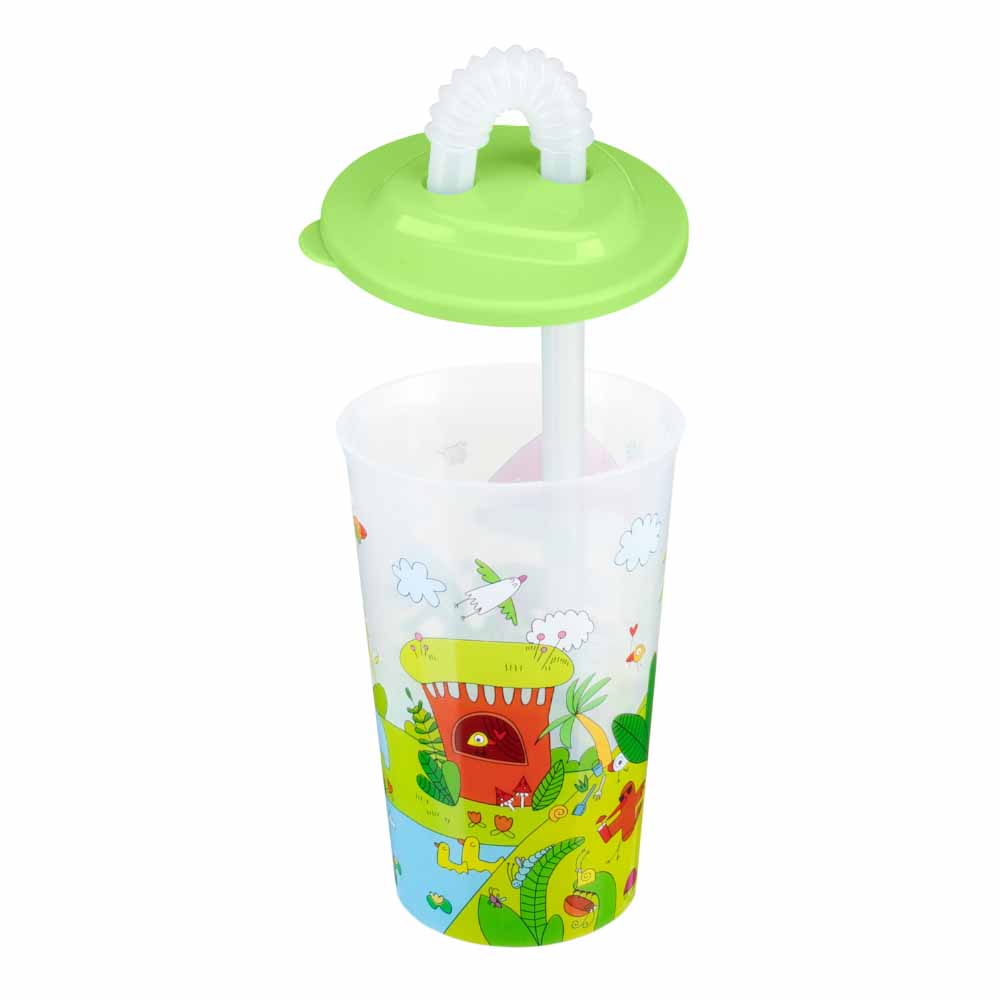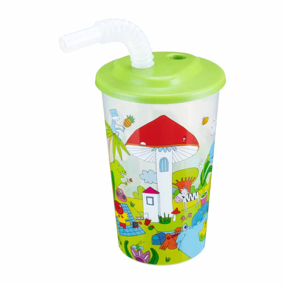 СТАКАН С ТРУБОЧКОЙ И ДЕКОРОМ "ЛЕСНАЯ СКАЗКА" 400 МЛ (Зеленый)