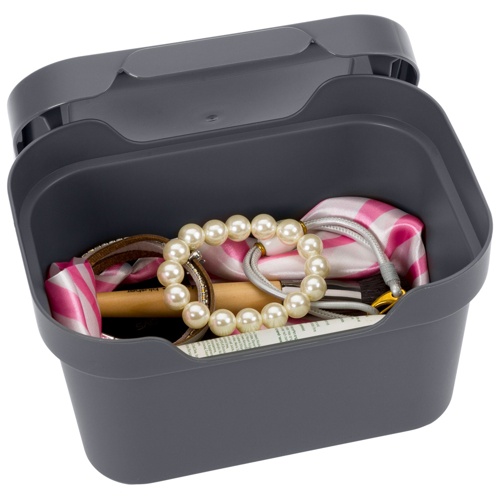 Матовый стильный ящик Luxe объёмом1,9 литра идеально подойдёт для косметики, аксессуаров и многого другого. Крышку ящика можно перевернуть, и она превратится в удобную полочку для хранения мелочей. Ящик Luxe с удобными ручками выпускается в четырёх трендовых цветах.