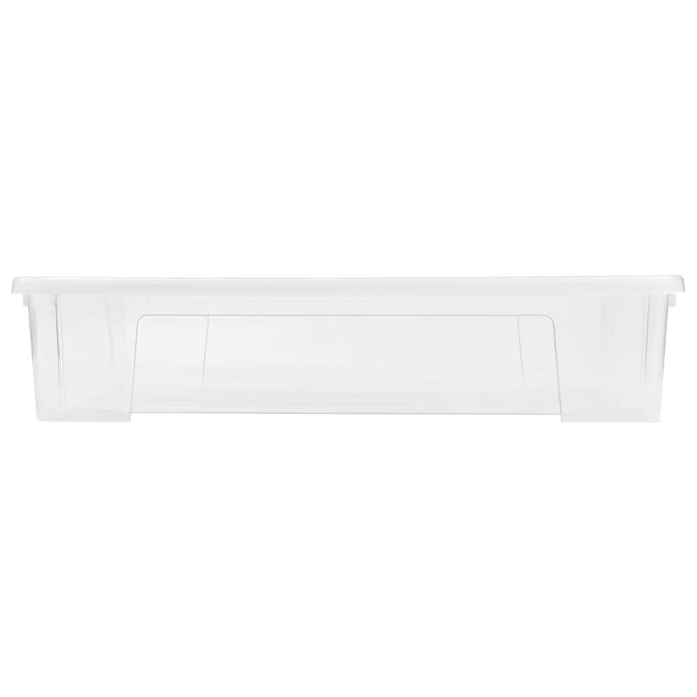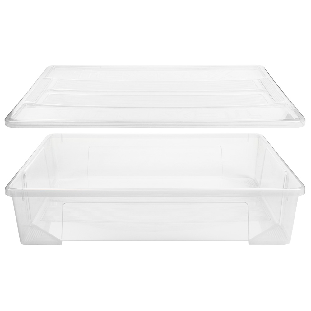 Материалом для изготовления изделия служит прочный пластик, который легко отмывается. Модель удобно использовать для под кроватного хранения вещей, благодаря небольшой высоте. Плотно прилегающая крышка защищает содержимое контейнера от пыли, частиц грязи и капель воды. Ящички хорошо штабелируются, что позволяет существенно экономить пространство. Объем — 61 л